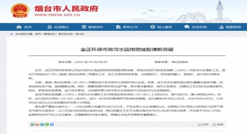 煙臺市政府門戶網站:金正環保市政污水回用領域取得新突破
